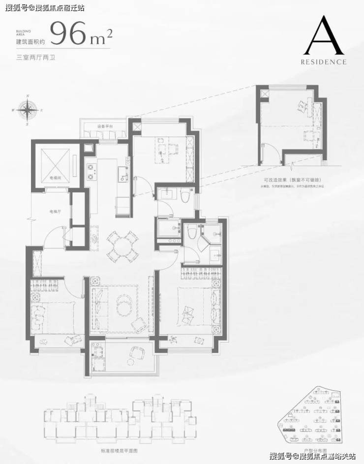 建筑面积约96㎡3房 经典飞机户型 精致进阶