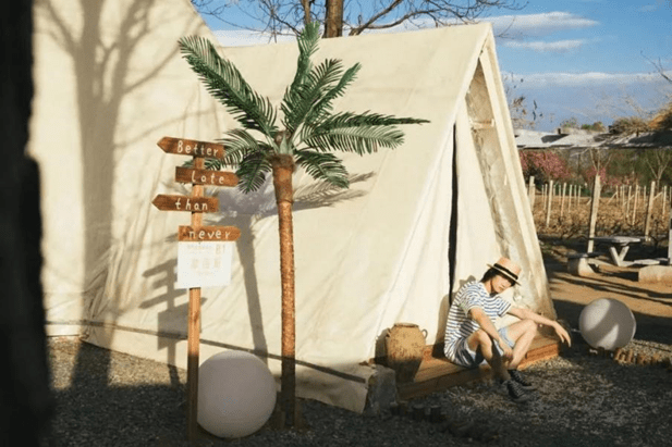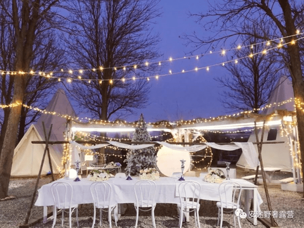 吊床、秋千椅、西式长条桌、田园风餐车、木色引路牌、小彩灯,九顶米白色的印第安式帐篷是这六百亩庄园里最浪漫的存在。九间帐篷,九种格调。不论是超级小清新的田园风格,风情万种的摩洛哥风格,亦或是当代都市感的尔湾风格,永不过时的日式榻榻米风格,没有一处重复。35平米的空间不仅有可以用餐的前厅,还有带智能马桶的洗手间。冰箱,加湿器,透光窗户,地暖空调,乳胶床垫,一次性洗漱用品,手冲咖啡机,智能投影仪,打破传统帐篷概念,只为给大家带来较好的体验,拎包入住名副其实。