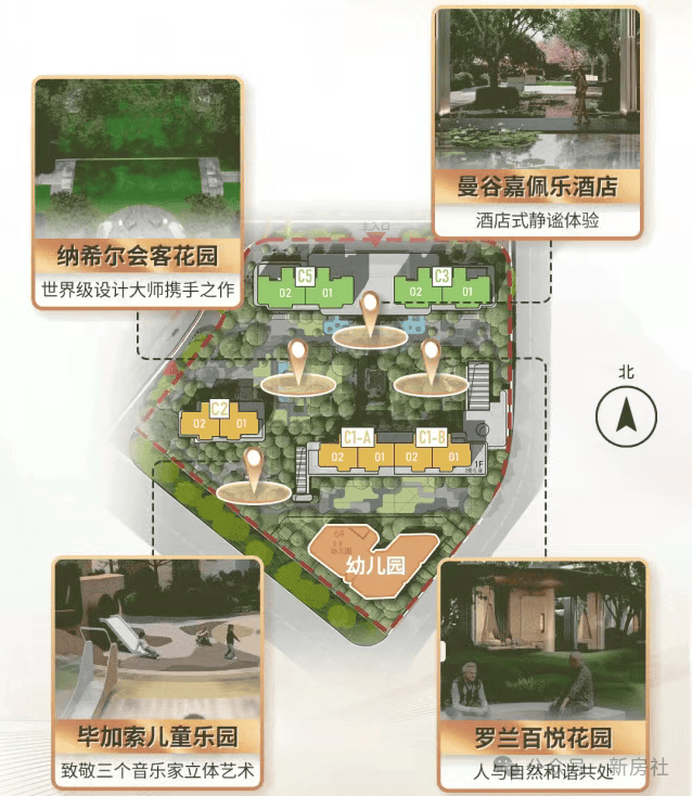 ◎ 约5000m²十字中轴私享园林:美国比弗利山庄一号为设计蓝本延续城市度假风格,以十字轴线延展,构筑中庭景观泛会所、主题花园等四大主题美境,聚焦全龄成长陪伴,在艺术美境中礼遇美好生活