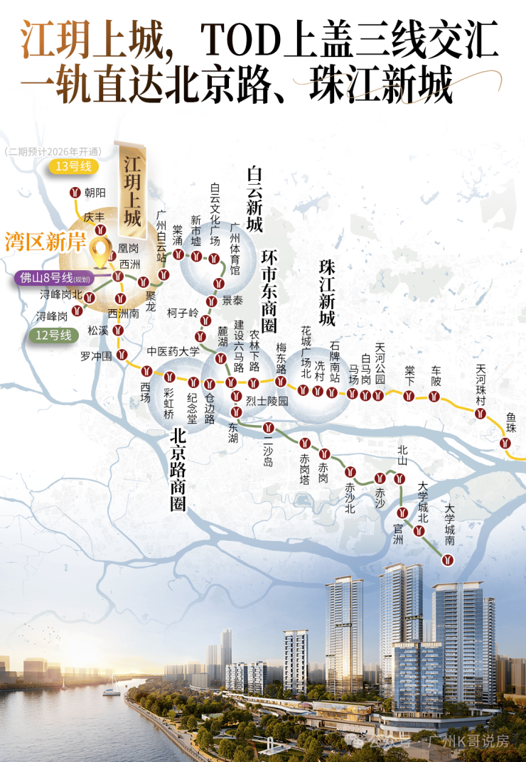 地铁13号线(2026年通车):串联白云/荔湾/越秀/天河,2站抵白云站,10站达珠城,约15分钟到荔湾彩虹桥站,约30分钟直达珠江新城,
