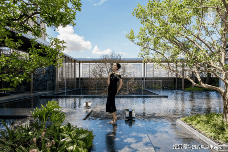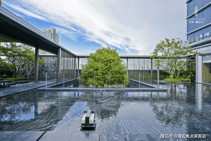 空中会客厅的水景设计是本次开放的重头戏。潺潺流动的水景与热带雨林风格的植物相结合,营造出一种轻松惬意的观景体验。