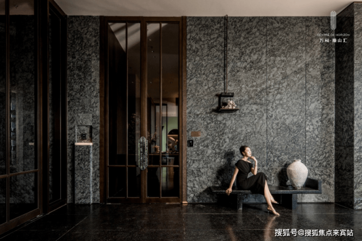 为了打造豪宅标杆,瑧山汇在空中会客厅的打造上大量使用了进口奢石。如电梯厅,墙面全部都是雅柏白石材,大堂墙面则采用了进口的南非绿石材、巴西的古驰黑石材。