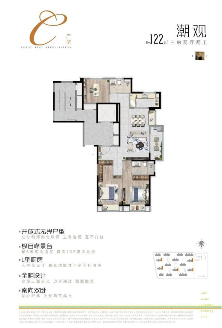 建面约122㎡ 三房两厅两卫(边套)——景观标杆,视野绝佳