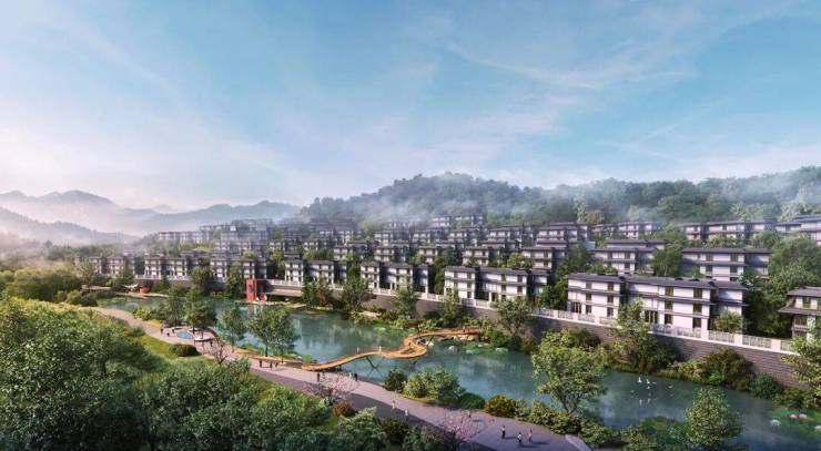 场地坐落在完整山体之上,如何把项目周边的山水资源以及自身的山体资源与现代宋式居住理念完美结合,是项目规划的重点。