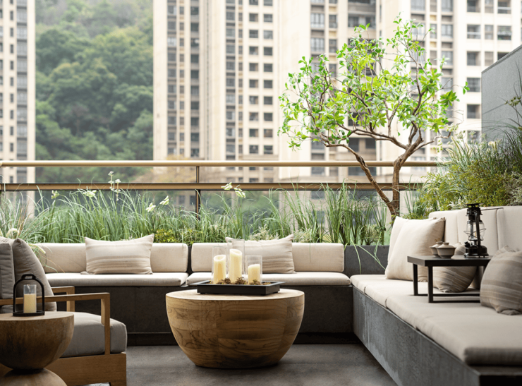 传统别墅产品营造的多以建筑为核心,而将室外庭院空间当做住宅的附属品,在这一点上,金地·御湖颂以前院后院设计,使单套建筑拥有更好的围合院落,赋予庭院的功能属性与空间私域感。三层L型围合建筑,三面高采光和高私密性、整体布局更加舒朗,景观视野更加开阔;各个功能空间以院子为核心,皆能享受到庭院景观;前后院的设计方式,使建筑有了“通透”感,目之所及皆透亮开阔,实现舒适与尊贵感并存。