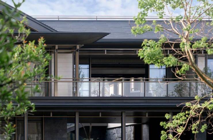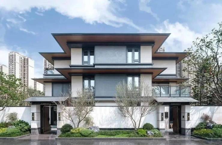 建筑风格:中式 外立面材质:铝板+真石漆+石材