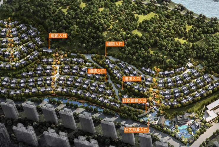 在道路规划上,遵循竖向最优原则,采用了环状道路与鱼骨状组团道路相结合的设计方式,使道路与山形完美融合。鱼骨状的尽端路划分出不同的居住组团,如倚山苑、溯石苑、一川苑、碧水苑等,每个组团不仅户型配比各异,而且各自拥有独特的景观主题,为业主提供了多样化的生活体验。