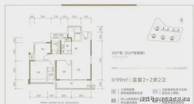 从户型图看,南北通透双阳台设计,满足生活和景观的需求,主阳台开间长达6.8米,连通次卧,通风采光都做到极致。