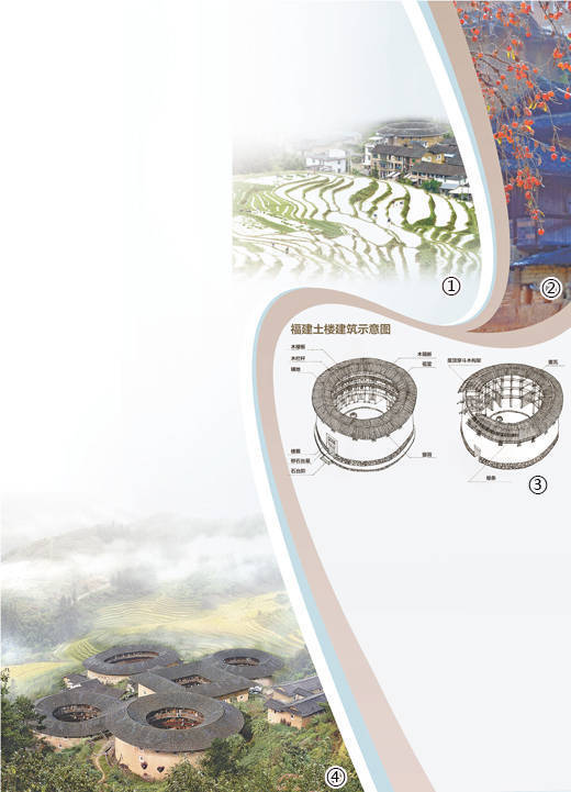 图③:福建土楼建筑示意图。