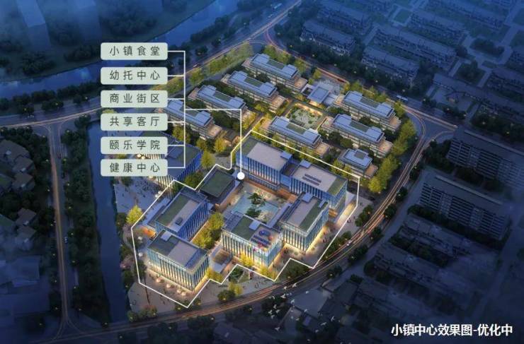 小镇中心,一个集生活、工作、娱乐于一体的地方,面积约1.8万平方米,其中生活配套设施占地约5600平方米。这里拥有小镇食堂、幼托中心、商业街区、共享客厅、颐乐学院、健康中心等各种设施,让生活更加便利与丰富多彩。