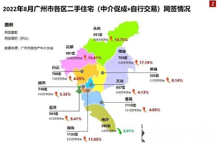 从广州市各区网签面积的环比情况来看,除南沙区下降3.01%以外,其余各区均有回升。