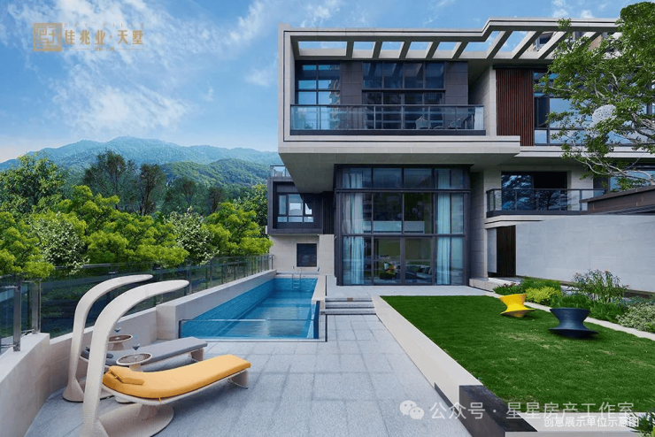 每栋别墅均配有私家泳池,享有360°全景视野。项目位于白云山南麓,西临白云山、东临龙眼洞森林公园,独享绿色生态和美丽景观。