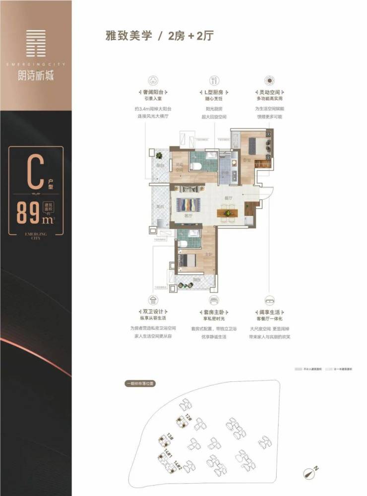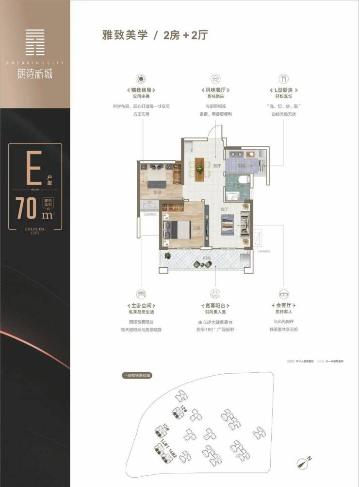 ②建面约70㎡两房两厅一卫,超大景观阳台,焕新生活想象。