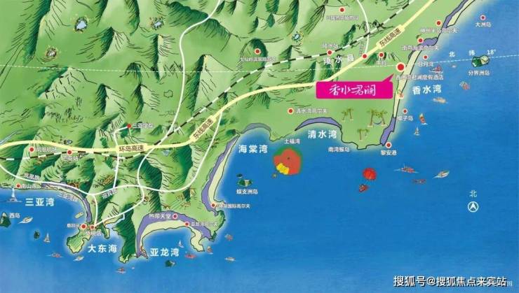 • 交通:距离三亚凤凰机场仅85公里,车程一个小时,乘坐环岛高铁仅二十分钟可以达到三亚站,同时项目距离陵水高铁站仅10分钟车程,距离海口市区约182公里,车程约90分钟