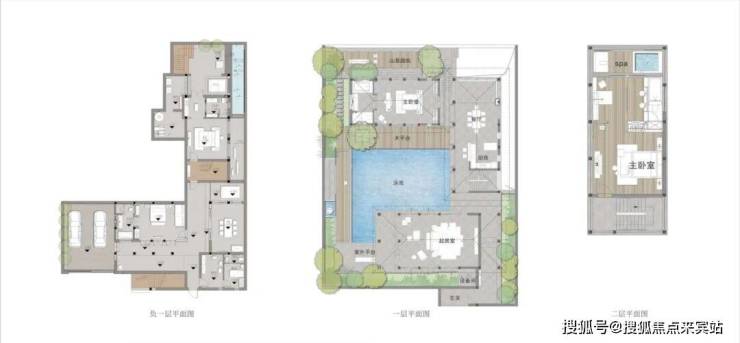 【户型图】两种户型:(1)水岸别墅:约171.13㎡占地面积约400㎡使用面积约310.27㎡,3房2厅3卫(可改4房)独立泳池约40㎡,精装交付,风行于水之上,犹如在卷帘的缝隙中采撷光影,与水结缘的生活就此畅然展开。