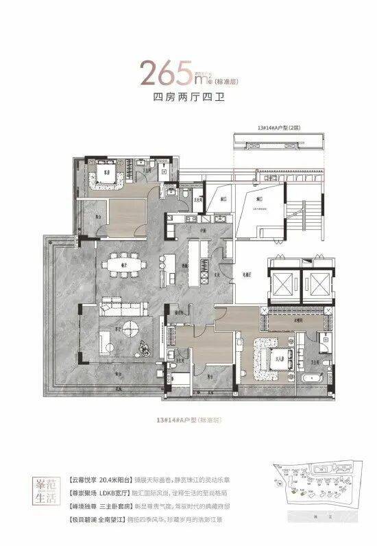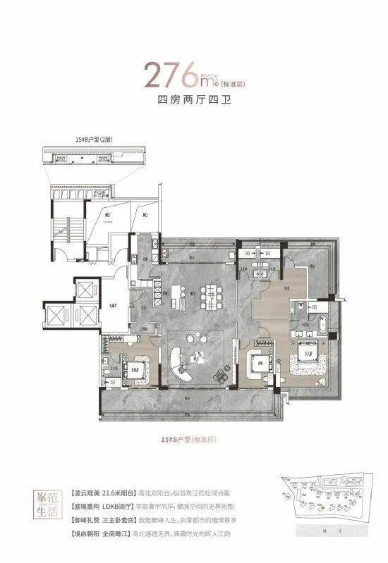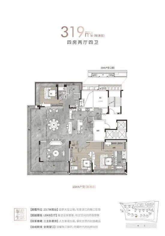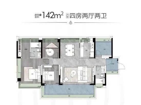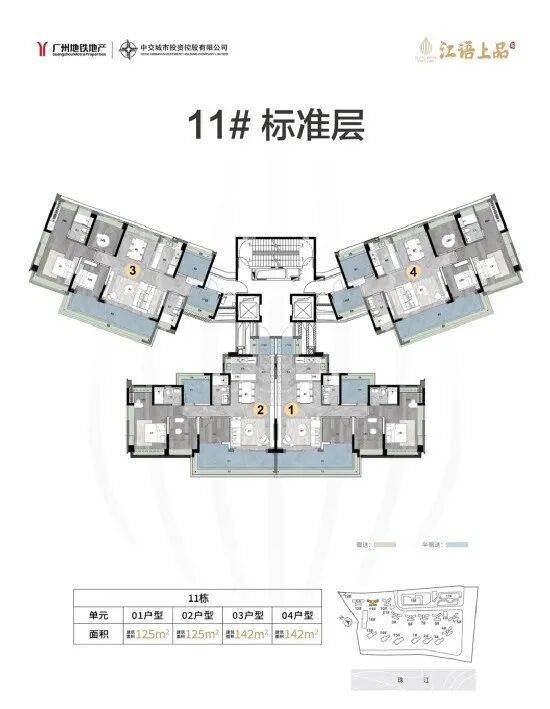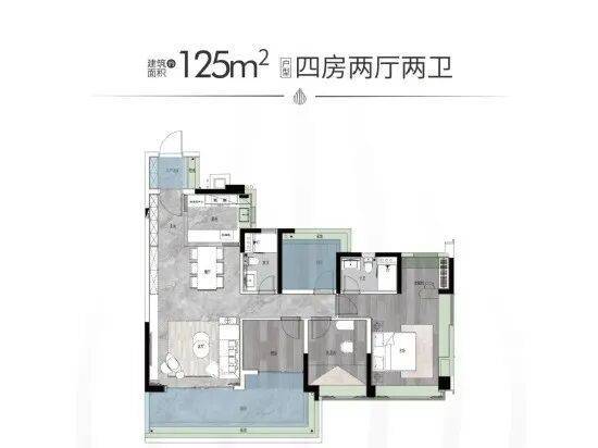 【户型面积】建面约125-142㎡四房两厅两卫/214-313㎡大平层