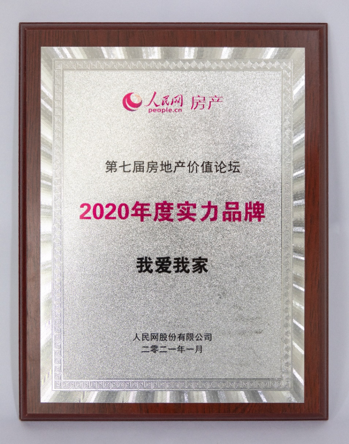 我爱我家获评 “2020年度实力品牌”奖
