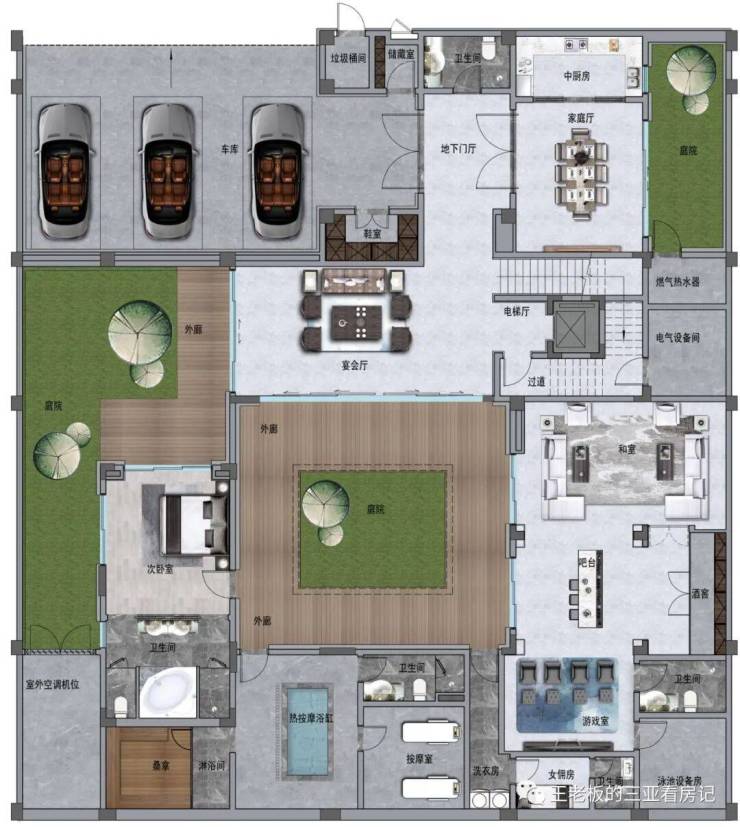 打破传统别墅/传统度假式别墅,设置和室、酒窖、游戏室、桑拿等空间,兼具居住体验与多样化娱乐功能体验。