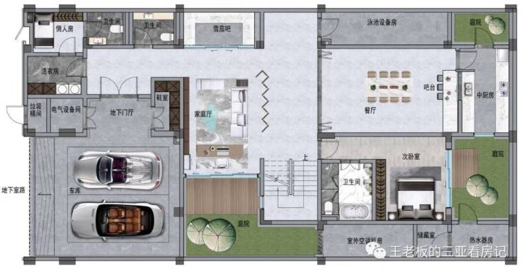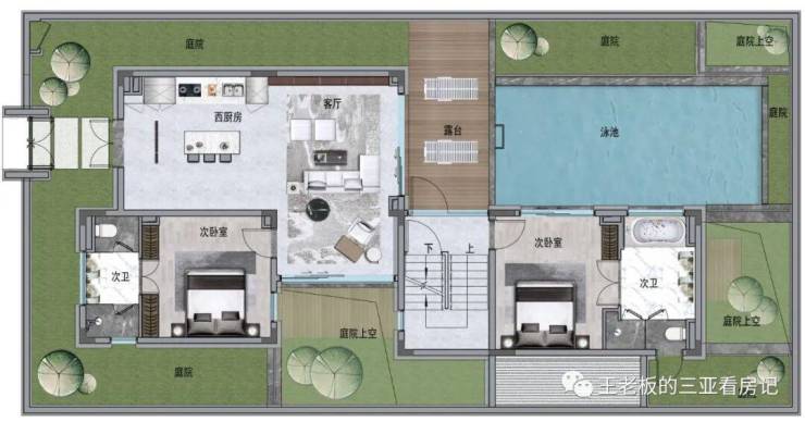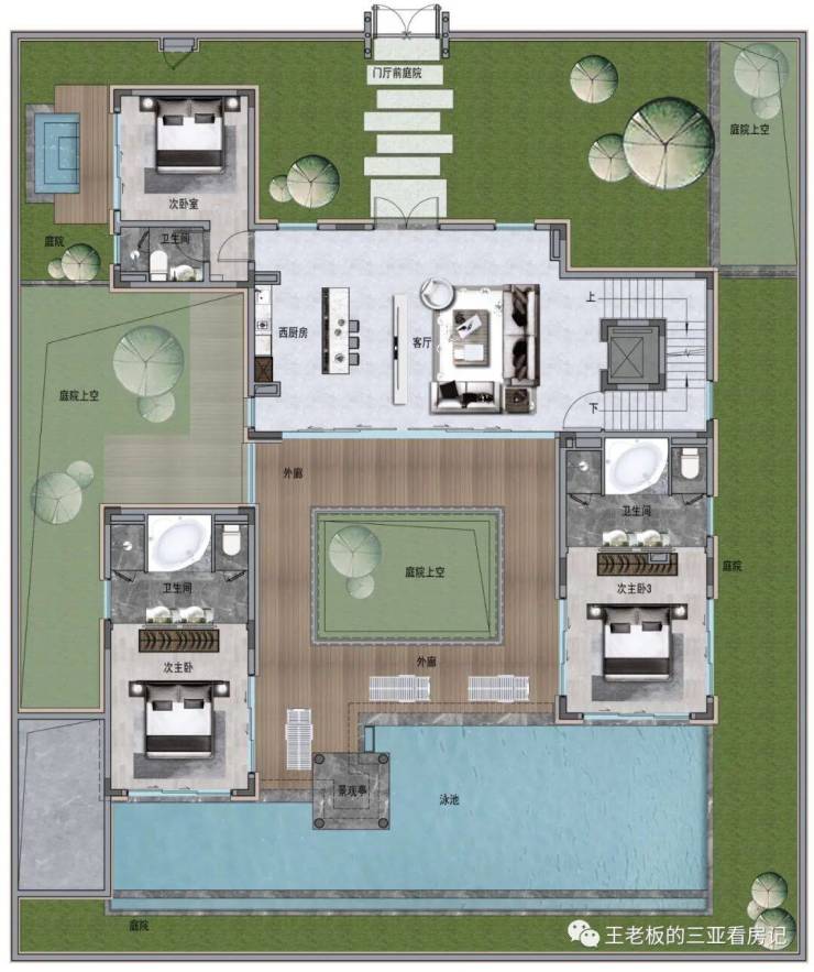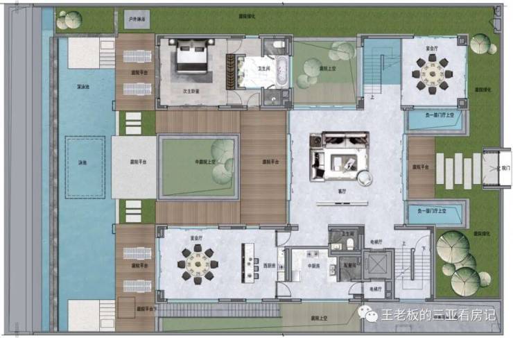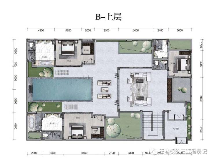 庭院面积:约678㎡ | 泳池面积:约105㎡