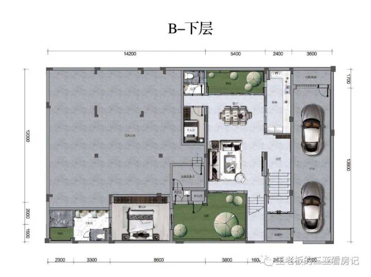 E户型:建面约600㎡(7室5厅17卫+3多功能厅+2工人房+2司机房)