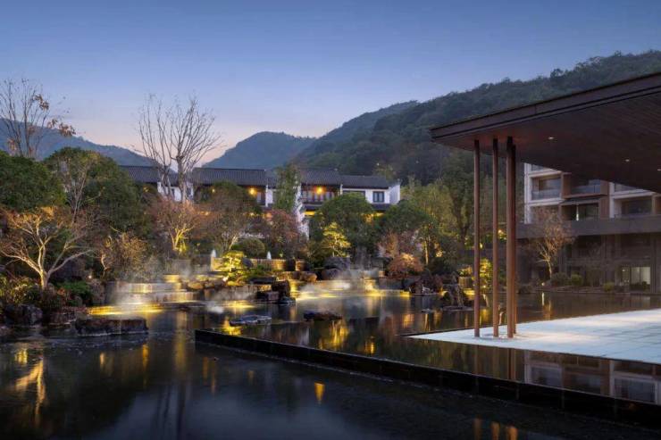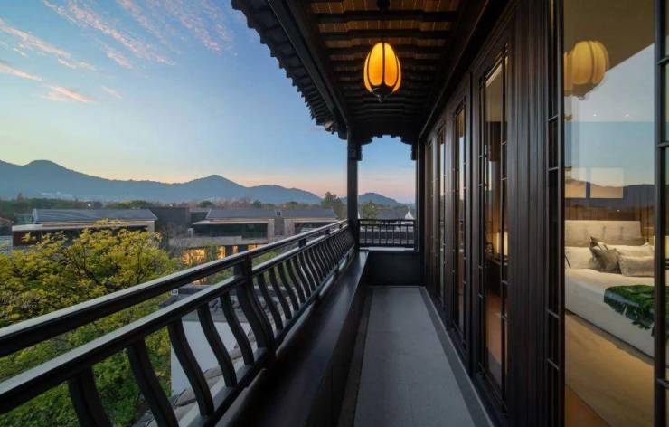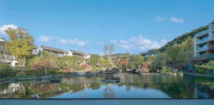 湖山天境最大的亮点便是其临湖而建的独特设计。推开窗,江南庭院的绝美风光毫无保留地映入眼帘,近处的院落、远处的山峦,泼墨一卷“虽为人作,宛自天开”的诗意江南,每一幕都是风情。