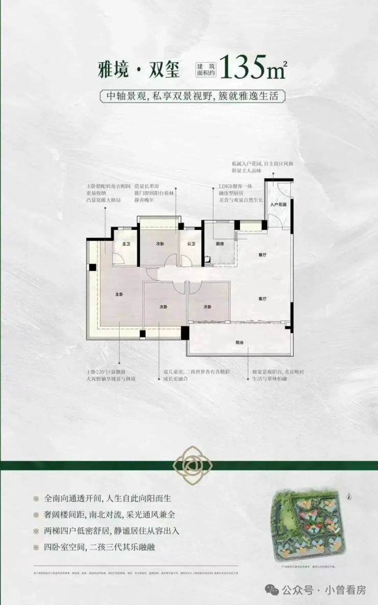 • 户型设计合理:首期推出98-135㎡臻装景观小高层,采用N+1设计,空间灵活,多为3房2厅2卫,低至11-15层亲地设计,视野广阔,部分前排无遮挡。
