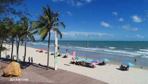 北海银滩,被誉为天下排名前列滩,空气格外清新,白沙碧水艳阳天,漫步柔软的白沙滩上或尽情地踏浪,别有一番趣味!来到北海,游客会自然而然的选择先到银滩。在绵延数公里长的沙滩上聚集众多游客,他们三五成群围坐沙滩椅上享受海风,孩子们在水里嬉戏,更有甚者在沙滩上搭起了临时帐篷,远处摩托艇飞驰而过掀起一道长长的海浪,引来欢呼雀跃。明媚的阳光下,游人在银滩里感受海韵、拥抱海水、亲吻浪花,享受惬意的假期。