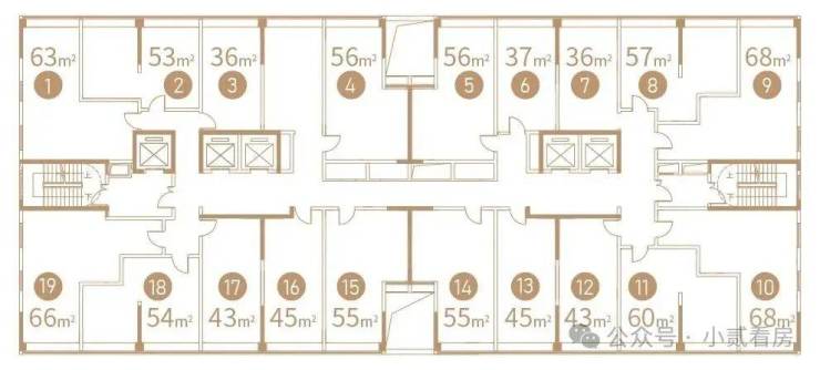 D-2公寓:399户(36-45㎡大单间,53-60㎡一房一厅,63-68两房一厅)