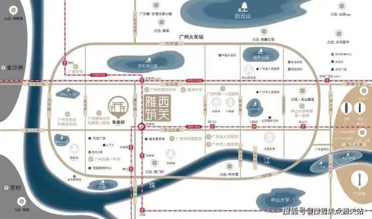 中山路被誉为广州的“第一走廊”,它不仅拥有深厚的城市文化底蕴,而且在历史上长期扮演着广州政治、经济、文化中心的角色。力迅•西关雅筑地处这一黄金地段,周边汇聚了大量的历史文化遗迹和现代化设施,包括省财政厅、市政府等机关单位,4A级景区陈家祠,以及多所百年学府如中山大学、广雅中学等。这使得项目成为兼具历史韵味与现代生活便利性的理想居住地。