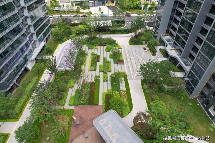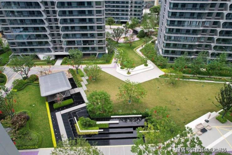 南组团花园:面向主入口做了一个迎宾水景,但背后是大面积草坪