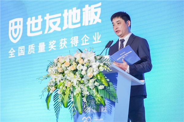 盛典伊始,世友地板总裁倪月忠为20周年庆典致辞,回顾总结了世友20年来开拓进取、创造辉煌的求质树品之路,同时也为企业指明了未来打造“全健康”的总方向,紧抓住世友第二次创业的战略机遇,进一步坚持品质传承、提升企业核心竞争力、优化产业制造布局,形成国际、国内市场双轮驱动,在巩固国内市场领导地位的同时并努力追求成为国际一流先进企业。
