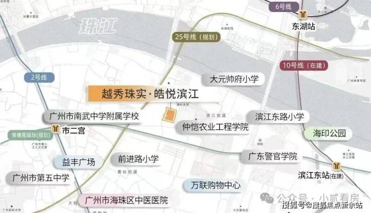 项目其实不是很近地铁站,最近2号线市二宫站步行距离大约1.2公里,有点不上不下的距离,最好是电动车需要接驳,一站江南西/海珠广场,2站昌岗/公元前,东侧还有10号线滨江东站在建中