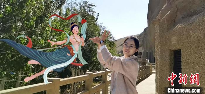 游客在参观过程中,还可以在虚实融合的特殊场景中,与飘逸灵动的飞天、栩栩如生的九色鹿、沉浸式全景洞窟、若隐若现的大佛等经典形象合影留念。这种贴近现实、延续性更强的传播交互方式,让优秀的传统文化更好地融入现代生活。