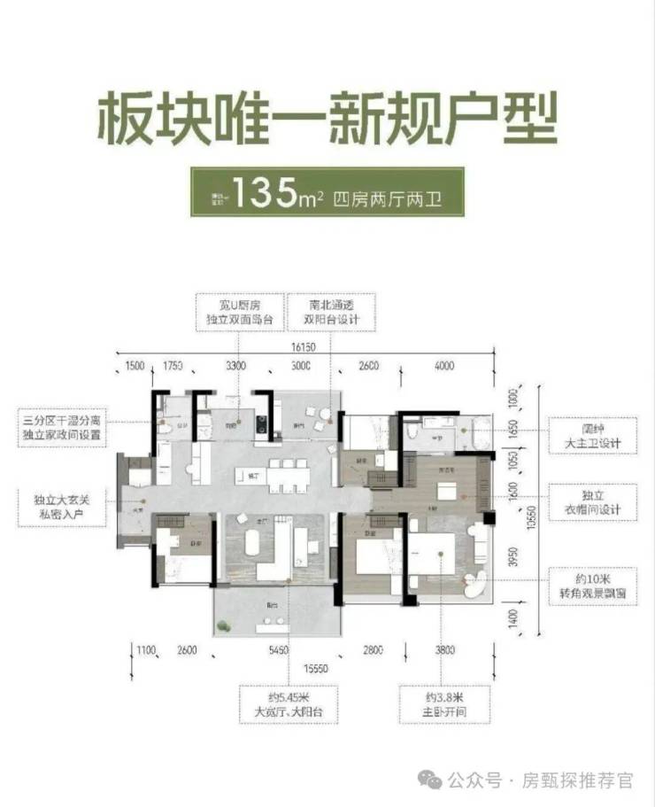 推出建面约77-135㎡三四房新规户型,万科檐屿城使用率最高可达约138%,并通过270°全景舱主卧、四面宽朝南约7米阳台等设计,将生活充分向自然打开,让LDKB一体化客厅和可变空间