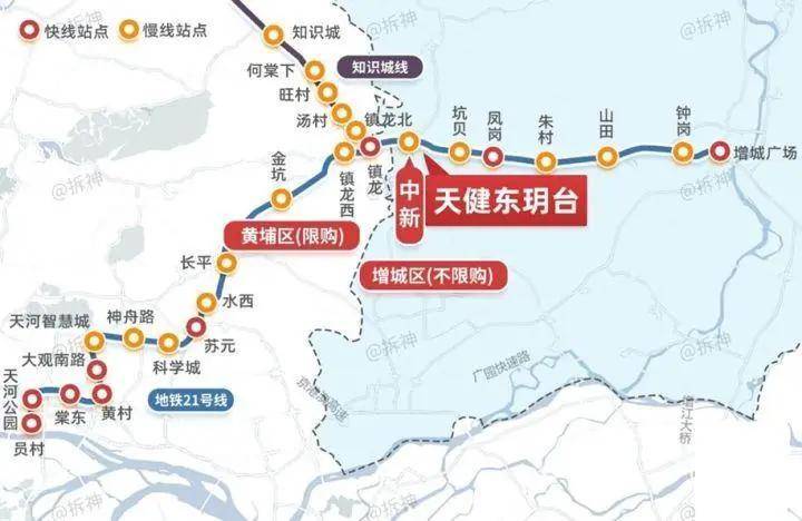 3地铁:21号线直达员村、14号线串联知识城、27号线直达新塘交通枢纽(规划)