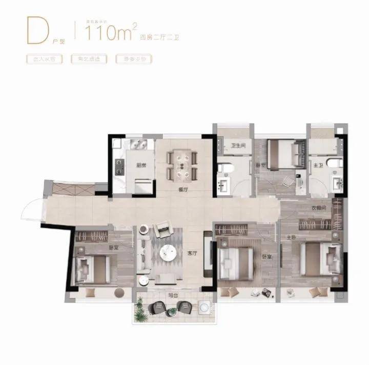 ✅ D户型 110㎡4房2厅2卫
