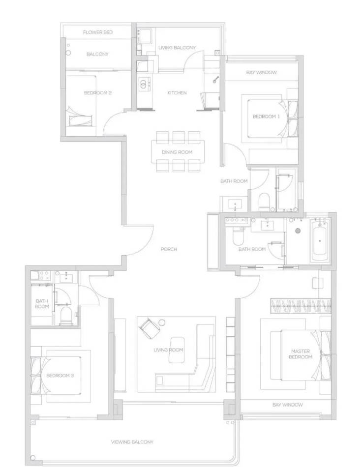 168㎡四叶草户型 四室两厅三卫