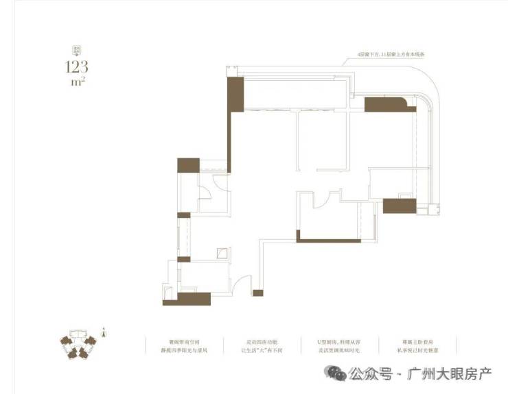 低区4-11层,约64户,主推建面约108-123㎡三四房,精准定位刚需改善群体;