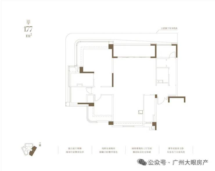 其中,约133㎡北侧看白云山,约143㎡西南向,约177㎡东南向。