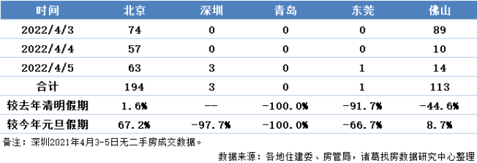 焦点财经讯 4月6日,诸葛找房数据研究中心发布2022年清明假期楼市成交数据。