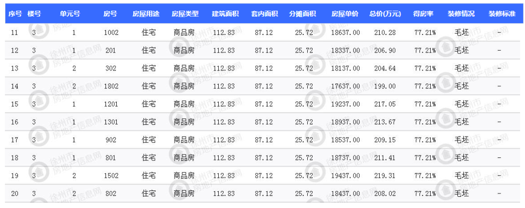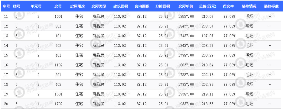 项目规划建设10栋层高18F的小高层,共576套房,1-7号楼为毛坯,8-11号楼为精装。此次领取预售的216套房源全部为毛坯房,建面约113、143㎡,毛坯备案均价18481元/m²。