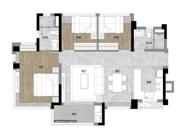 84㎡三房两卫,全新升级三房
