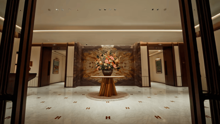 长达14.5米的“龙鳞景墙”采用罕见整石雕刻,让东方龙图腾在石材的天然纹理中苏醒,每一片鳞甲都盛载文明重量。