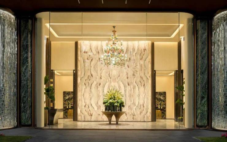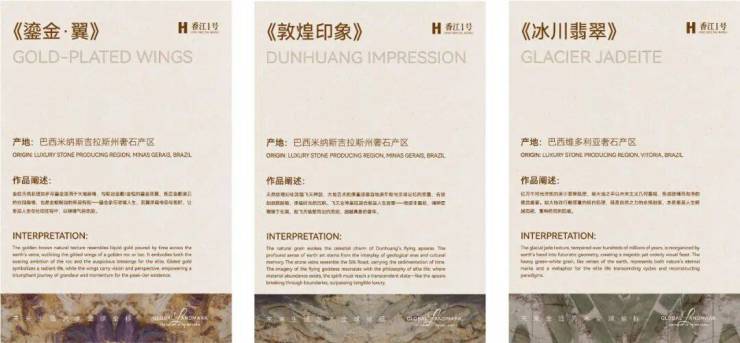 无论是呈现翡翠冰川通透感的“冰川翡翠”,还是色彩瑰丽宛如敦煌壁画的“敦煌印象”,抑或是金棕纹理泼洒勾勒金鹏凌云之翼的“鎏金·翼”,每一面背景墙都是一幅举世无双、由大自然执笔的天然艺术孤品。