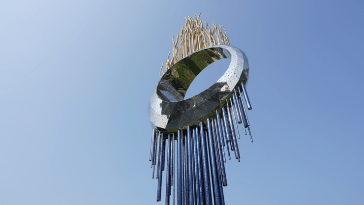 联合国“环保艺术大师”袁熙坤创作的“未来之眼”,高达9.8米,不仅是一件雕塑,更是一个与环境和鸣的数字艺术生命体。其表面37万个精密的光孔,可依据环境进行呼吸律动的编程,让静止的雕塑拥有了生命的脉搏。