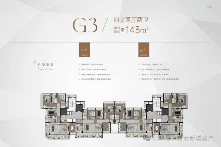 项目的总规划为349户,并包含多个不同类型的住宅产品,以满足不同购房者的需求。除了4栋(R1-R4)政府配建房外,项目对外销售的产品主要包括叠墅、小高层和高层,每户户型建面均为143㎡。这使得该项目满足了不同家庭结构的需求,尤其适合追求大空间和高品质生活的高端家庭。