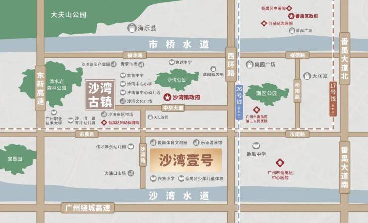 嘉业沙湾壹号位于沙湾板块,紧邻市良路与西环路双主干道,近享荔园新天地、奥园广场等繁华商圈。周边覆盖全龄段优质教育资源及番禺中心医院等医疗配套。未来双地铁(17/26号线【规划中】)加持,直通广州核心区域。