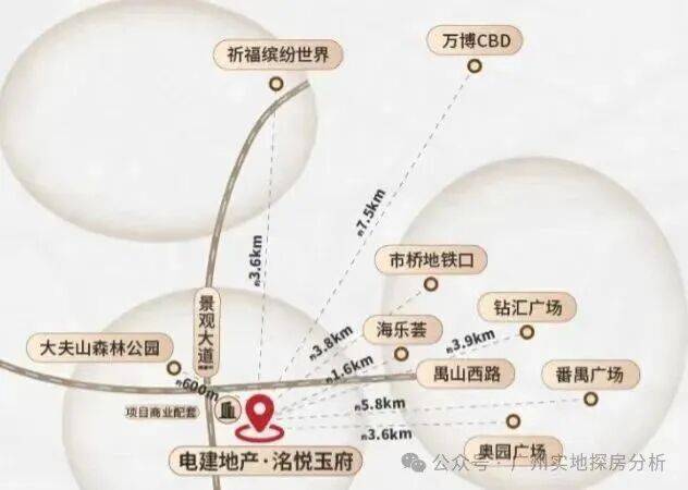 项目位于番禺区大夫山板块,算是市桥西板块,楼盘就在禺山路边上,楼盘西北侧就是大夫山森林公园,拥有板块最高配智能装修标准。