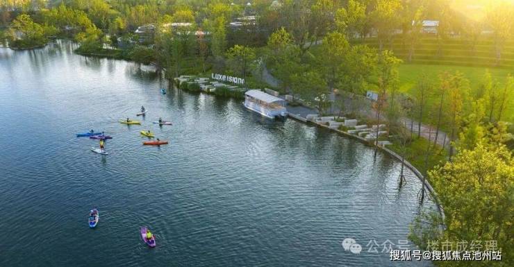三面环水一面瞰江滨水景观带,府河湿地公园、幸福公园、张公堤森林公园、鱼梦科普公园四大公园环绕,自建约3.2公里幸福长堤绿道,距离高端文旅项目-麓洲国际生态城直线仅1.2公里。