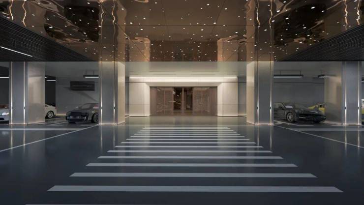 柔和的光亮从车库顶洒下,呈现出一幅炫美纷呈的星空视感,从容移步至奢华车库入户大堂和首层迎宾入户大堂。
